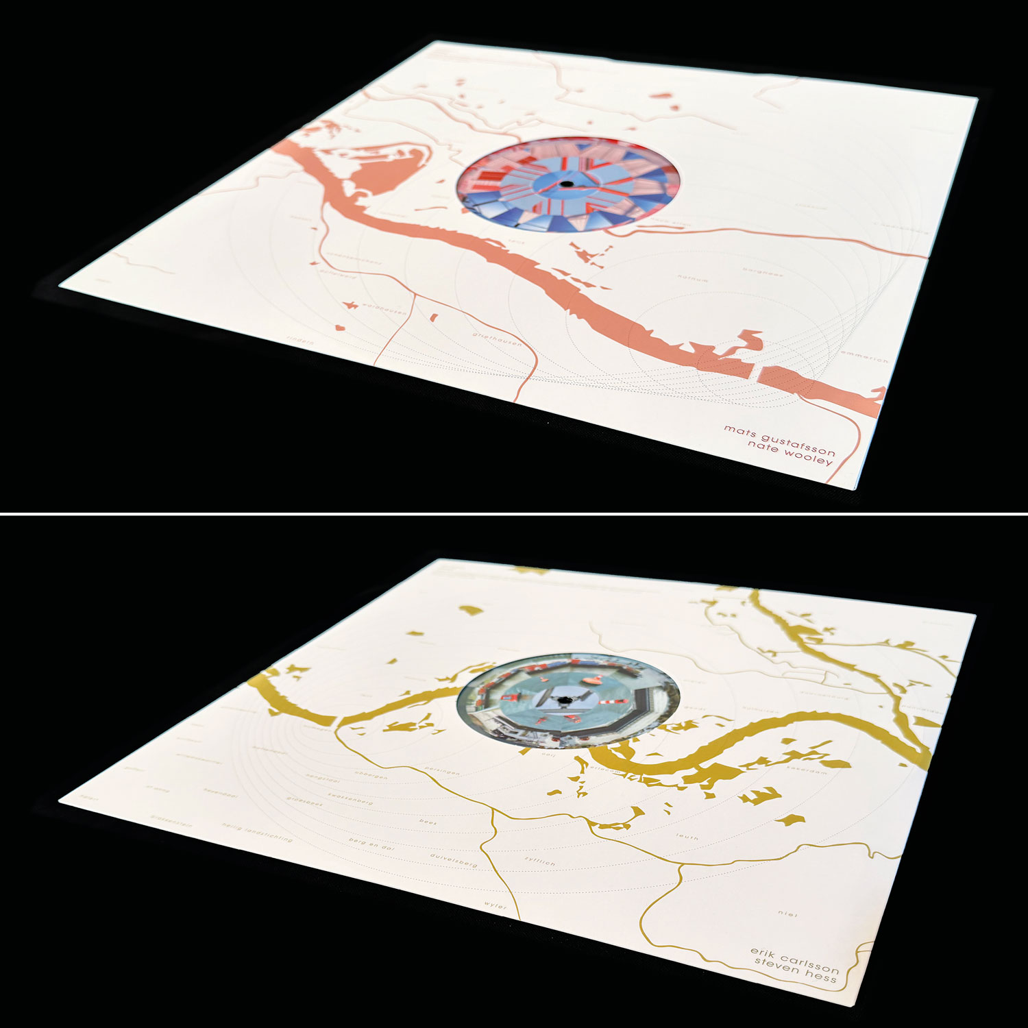 Using colour images of four bridges, cut up and collaged in concentric circles, Dutch graphic artist Gerco Hiddink designed a record sleeve for music that didn’t yet exist. He and Rutger Zuydervelt – also trained in graphic design, but working with sound as Machinefabriek since 2004 – then made stereo field recordings at the site of each bridge. These audio snapshots were forwarded to improvisors inviting them to play along with the recorded environments. One bridge was assigned to percussionists Jon Mueller and Burkhard Beins, another to saxophonists Jim Denley and Espen Reinertsen, the third to percussionists Steven Hess and Erik Carlsson, the fourth to saxophonist Mats Gustafsson and trumpeter Nate Wooley. They each recorded their responses in isolation and sent them to Zuydervelt, who assembled them into four long-distance duets, which occupy a side each of Bridges. There’s an obvious fascination in hearing physically distant instrumentalists responding sensitively to the same set of auditory prompts in ways that suggest they are playing in close proximity. Zuydervelt’s choices were well judged. Gustafsson was a bold choice given his vociferous nature, but the duo with Wooley has a fine balanced tension comparable to the other virtual duets. Beyond the artefact, Hiddink and Zuydervelt offer a conceptually viable articulation of place in an age of downloads and diminished spatial barriers to exchange and communication.