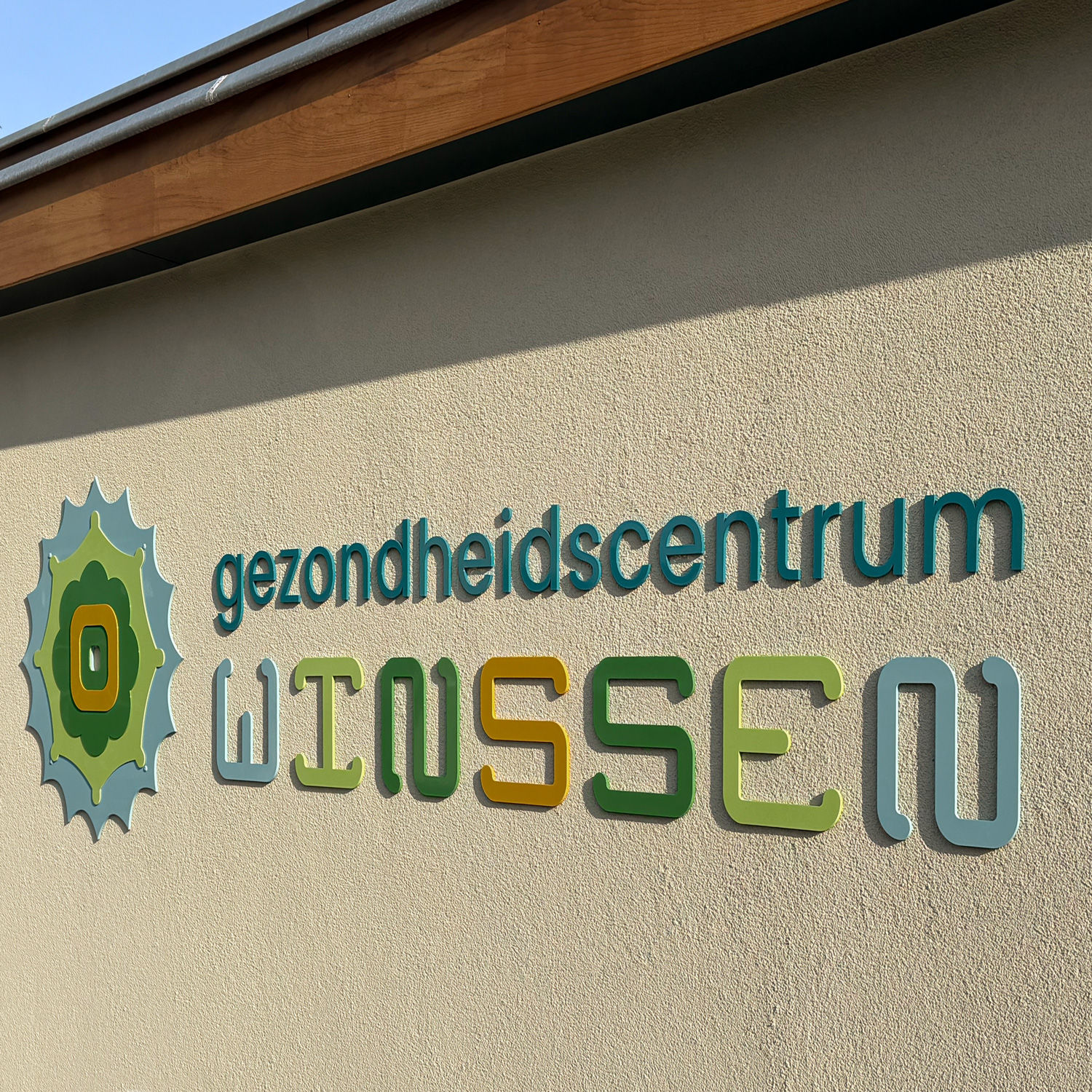 Het beeldmerk van Gezondheidscentrum Winssen is een abstracte vertaling van het gebouw en haar ligging in de polder achter de dijk in het land van Maas en Waal. De buitenste ring symboliseert het water, de lichtgroene ring verbeeldt de uiterwaarden met de kribben, de donkergroene ring staat voor de fruitbomen in en rondom het dorp en de bruine ring staat symbool voor de bebouwing en heeft de vorm van de houten patio in het hart van het gezondheidscentrum.
