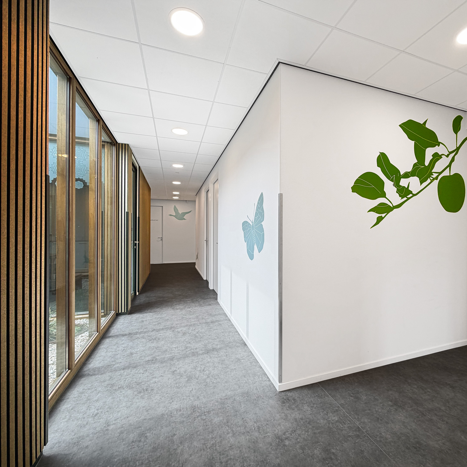 Gezondheidscentrum Winssen: visuele identiteit doorgevoerd in interieur en exterieur