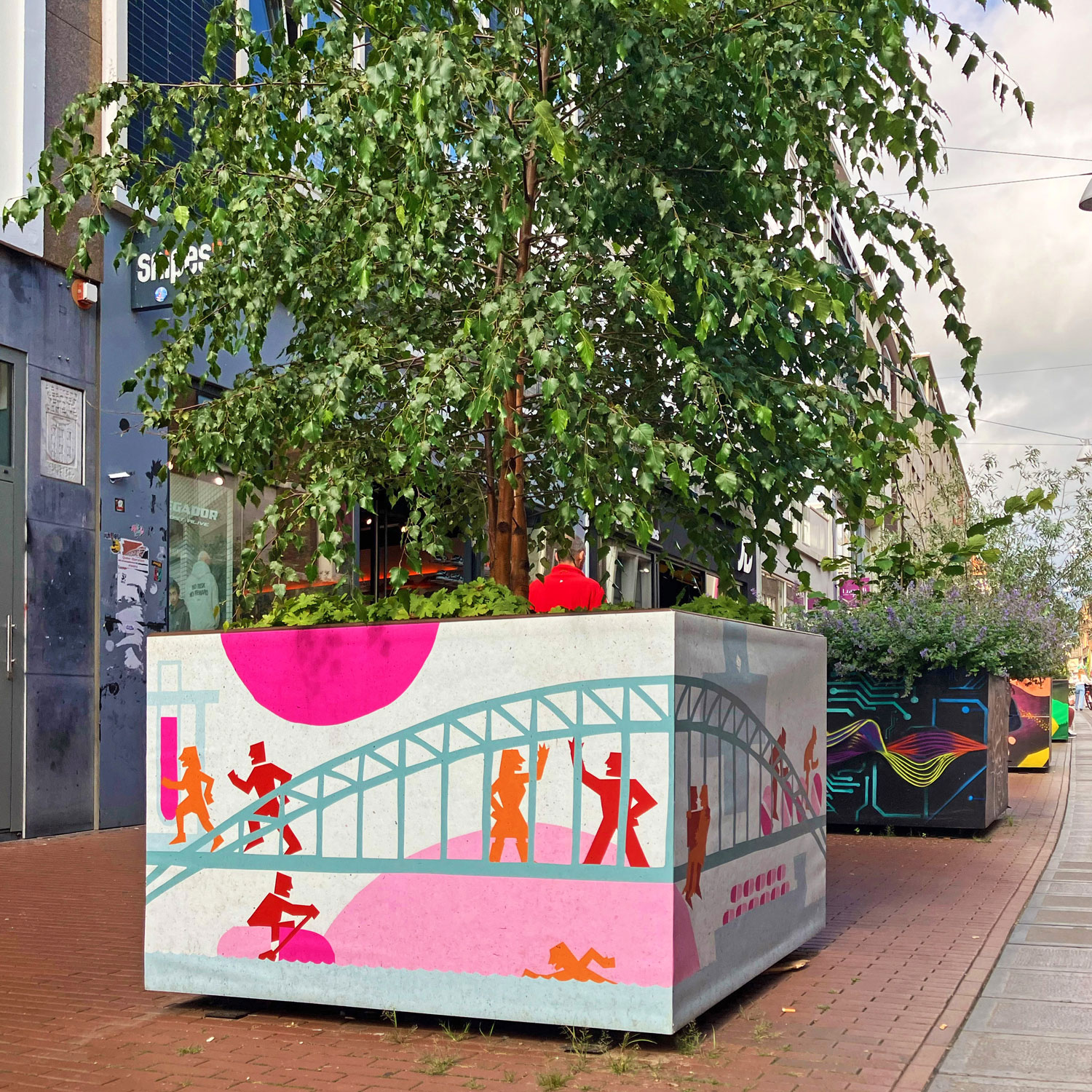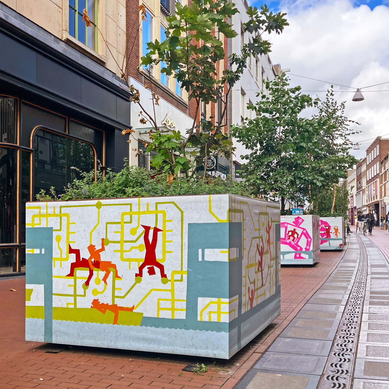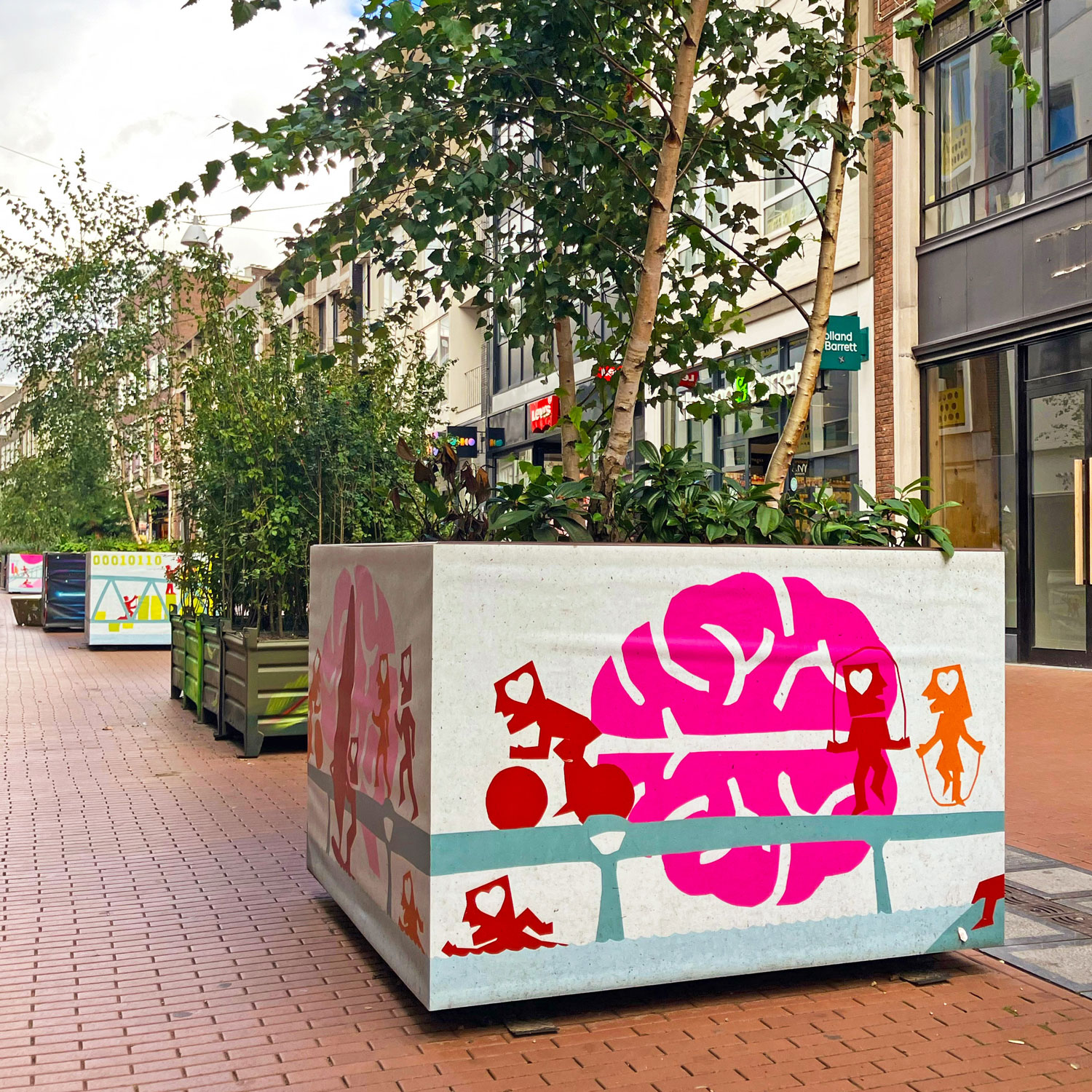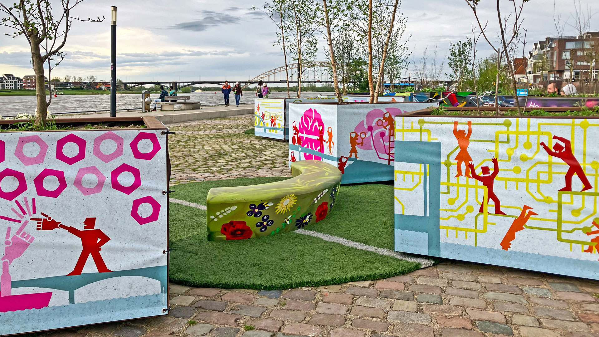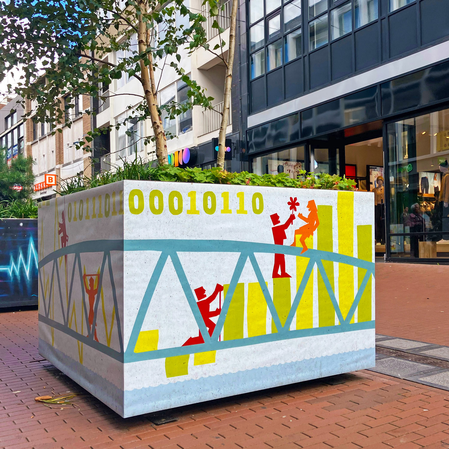 Ze reisden meer dan een jaar door het centrum van Nijmegen: de wandelende plantenbakken die meer groen in de stad aankondigen. Gemeente Nijmegen vroeg Studio Hartebeest om 6 spandoeken te ontwerpen in het thema ‘Health & Hightech’ (twee belangrijke economische thema’s van Nijmegen). Zes Nijmeegse bruggen verbinden de thema’s op een speelse manier met elkaar.