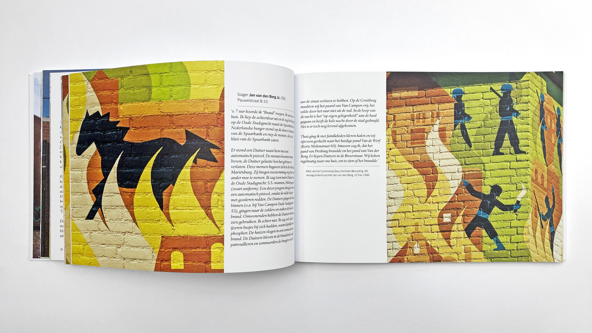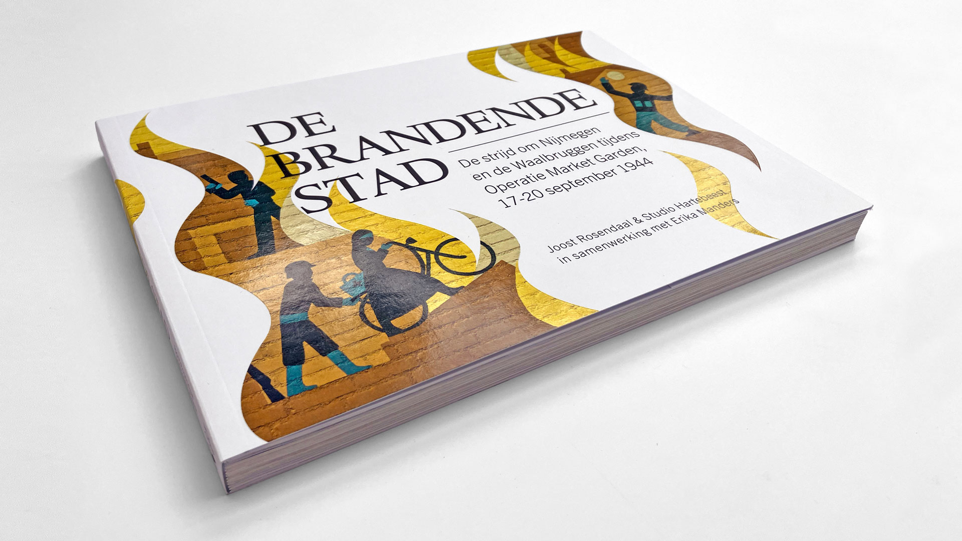 De Waalpaintings, die samen een Nijmeegs muurmuseum vormen, maken onzichtbare stadsgeschiedenis weer zichtbaar. In de schildering van Studio Hartebeest op de Lindenberg staat Operatie Market Garden en de impact daarvan op Nijmegen en de Nijmegenaren centraal. Op basis van dagboekfragmenten, getuigenissen en foto’s is een groot aantal scenes van de strijd tot leven gebracht. In De brandende stad zijn deze bronnen door historicus Joost Rosendaal bij elkaar gebracht. Naast de historische context geeft kunstenaar Gerco Hiddink, in samenwerking met Erika Manders van Waalpaintings, inzicht in de totstandkoming van de muurschildering en de keuzes die zijn gemaakt om nieuw licht te werpen op de gebeurtenissen die in september 1944 in Nijmegen plaatsvonden.