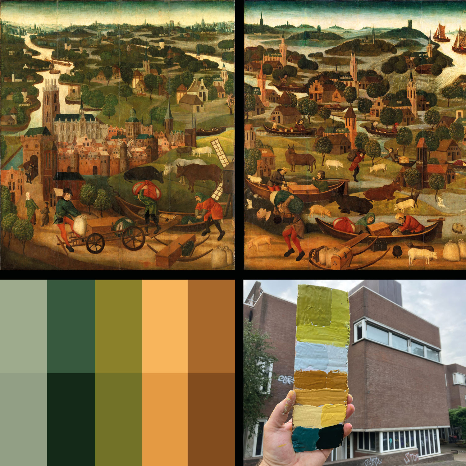 De vlammenzee en de chaos worden verbeeld in de muurschildering: fragmenten uit de dagboeken zijn vertaald naar illustraties die gepositioneerd zijn in een abstract vlammenpatroon. Inspiratie voor compositie en kleurgebruik werd gevonden in 15e eeuwse verbeelding van de De Sint-Elisabethsvloed (te zien in het Rijksmuseum), waarop ook een ramp is te zien die zich afspeelt in een groot gebied. De illustratiestijl werd geïnspireerd door het iconografisch werk van Gerd Arntz, de Duits-Nederlandse grafisch ontwerper die in de jaren 30 Oostenrijk verliet na de overname door Hitler en in Nederland een van de grondleggers werd van de moderne beeldstatistieken en pictogrammen.