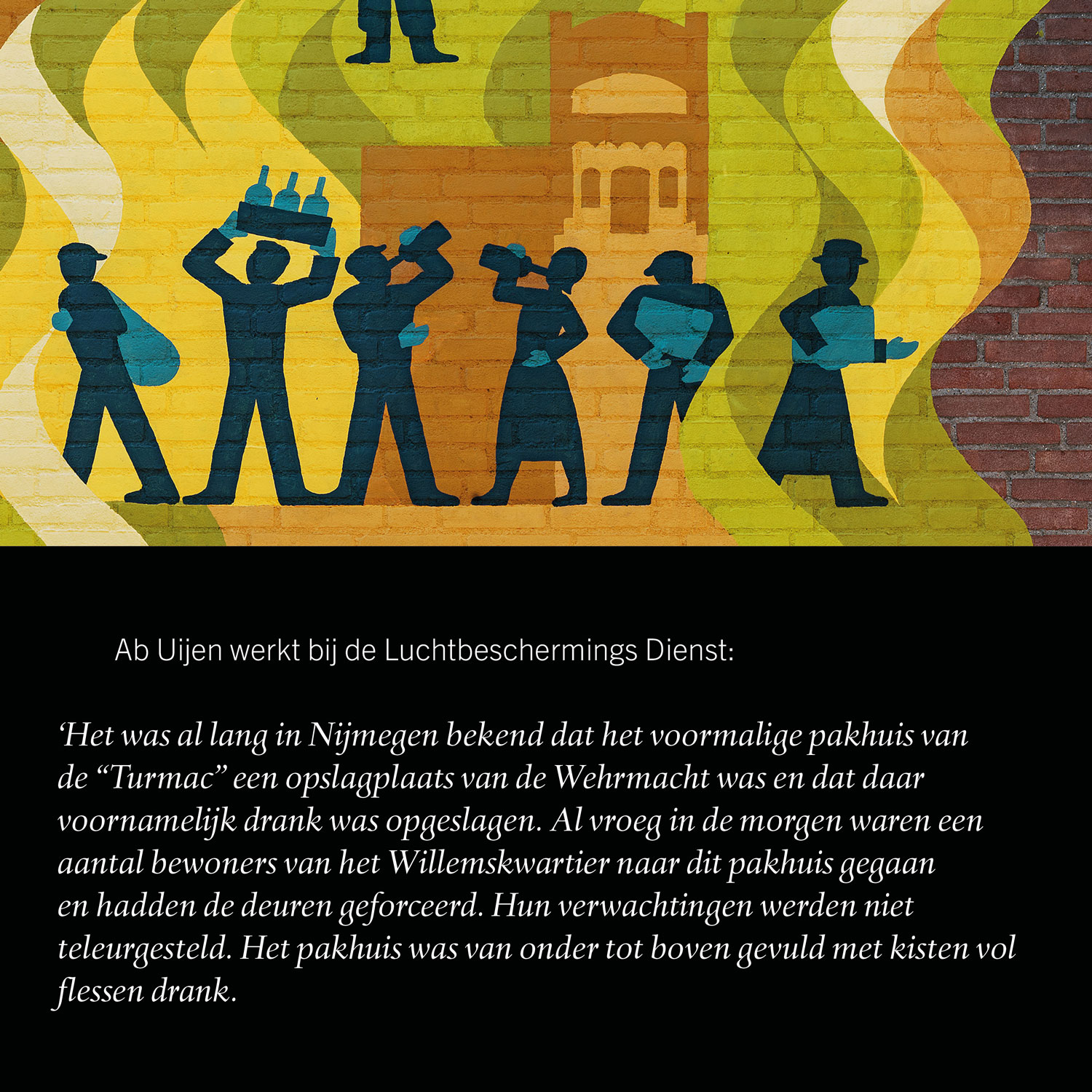 Veel Nijmegenaren hielden dagboeken bij tijdens deze dagen, die bewaard zijn gebleven. De muurschildering laat scènes zien die zijn gebaseerd op deze dagboekfragmenten. Het beeld dat uit de dagboeken oprijst is dat van een apocalyptische wereld: terwijl boven de grond geallieerden en nazi’s in een verbitterde strijd verwikkeld waren te midden van een enorme vuurzee, zaten de meeste Nijmegenaren onder de grond in schuilkelders in angstige afwachting van de uitkomst van de strijd. Tijdens deze verschrikkelijke dagen kwam het mooiste en het akeligste in de mensen naar boven, zowel bij de soldaten aan beide zijden als bij de Nijmegenaren zelf. De muurschildering is een verbeelding van deze complexiteit en is aangebracht op een centrale locatie tijdens de gevechten: de Lindenberg.