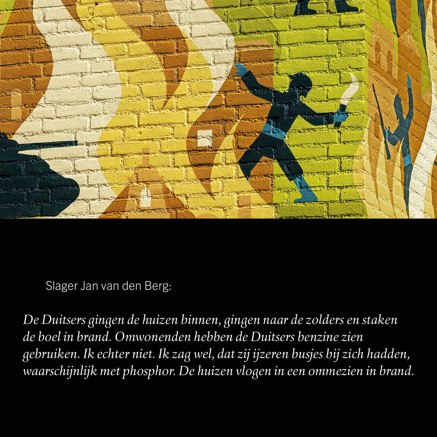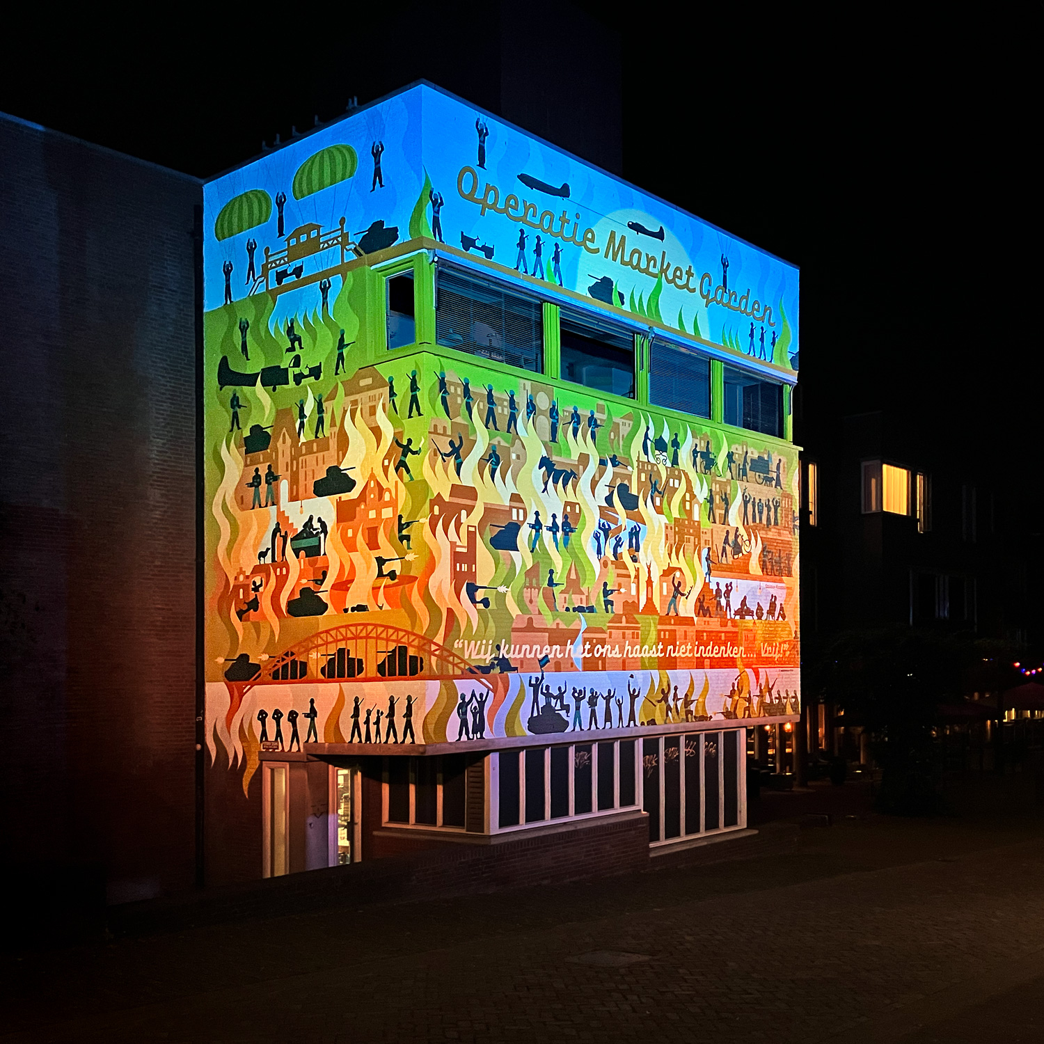 Studio Hartebeest werd gevraagd door Waalpaintings om een muurschildering te ontwerpen en uit te voeren over Operatie Market Garden op de gevel van Lindenberg Cultuurhuis in het centrum van Nijmegen. Op de muur zijn een groot aantal scènes te zien die zijn gebaseerd op dagboekfragmenten van Nijmegenaren, ingebed in een vlammenpatroon. De muurschildering werd in een periode van zes weken gerealiseerd, met de nodige hulp van vrijwilligers.