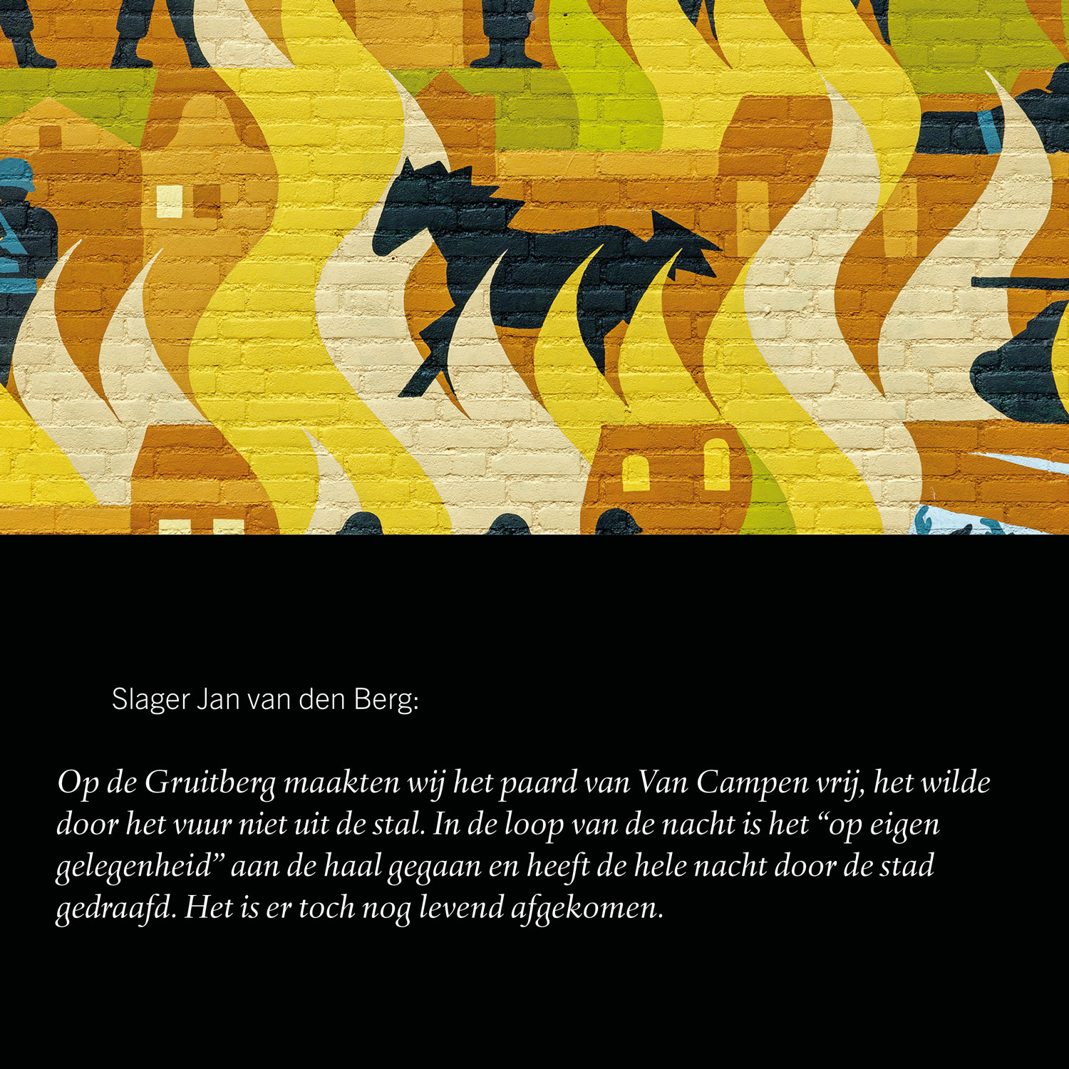 Gebaseerd op de muurschildering en het boek De Brandende Stad werden een aantal dagboekfragmenten door middel van animatie tot leven gebracht in de stijl van de muurschildering. Vervolgens zijn deze animatie ingebed in een 3D omgeving, samen met historisch beeld. De fragmenten zijn ingelezen door Nijmegenaren.