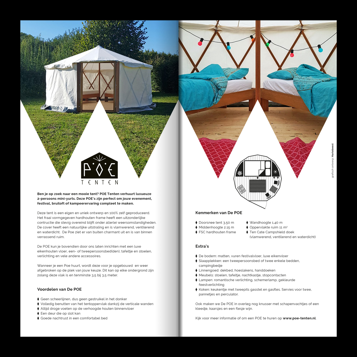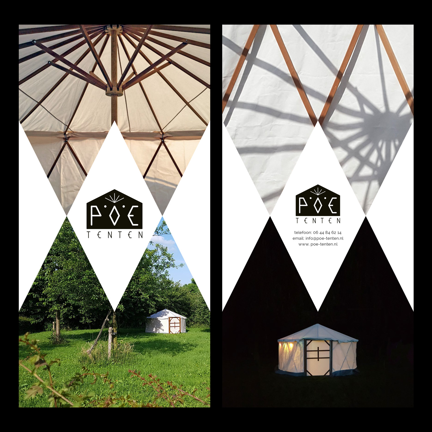Voor POE Tenten ontwikkelde Studio Hartebeest een visuele identiteit en dacht mee over het vergroten van de herkenbaarheid. De POE Tent is een icoon op zichzelf en vanuit dat idee ontwikkelden we een logo en typografie die één zijn met de tent zelf.