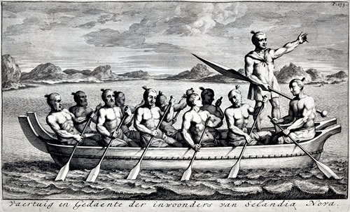 The first published picture of New Zealand was an engraving based on drawings of ‘the Murderer’s Bay’, in Nicolaes Witsen’s ‘Noord en Oost Tartaryen’. Ruediger Mack believes the engraving is based on based on original drawings made on board that are now lost, just like the ‘Blok Fragment‘ and the ‘State Archives Copy‘. R.D.J. Collins believes the illustration is based on the ‘Blok Fragment‘ and/or the ‘State Archives Copy‘. De eerste gepubliceerde afbeelding van Nieuw-Zeeland was een gravure gebaseerd op de tekeningen van de ‘Moordenaarsbaai’, in Nicolaes Witsen’s ‘Noord en Oost Tartaryen’. Ruediger Mack gelooft dat de gravure is gebaseerd op originele tekeningen die aan boord werden gemaakt en die nu verloren gegaan zijn, net zoals het ‘Blok Fragment‘ en de ‘Nationaal Archief Kopie‘. R.D.J. Collins daarentegen gelooft dat de illustratie gebaseerd is op het ‘Blok Fragment‘ en/of de ‘Nationaal Archief Kopie‘.