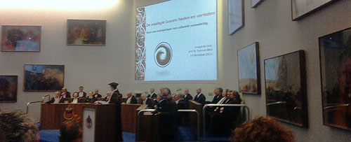 14 December 2012: prof. dr. Toon van Meijl’s inaugural speech The analogy between past and present: Towards an anthropology of cultural change at the Radboud University in Nijmegen, The Netherlands. Based on the situation of the Maori in New Zealand and his years of research there, Toon van Meijl shows in his speech how, by using the concept of analogy, a better understanding is possible in the way people in multicultural societies deal with cultural differences and cultural changes. Maori are changing traditions by using them. 14 december 2012: prof dr. Toon van Meijl houdt zijn inaugurele rede De analogie tussen heden en verleden: Naar een antropologie van culturele verandering” aan de Radboud Universiteit in Nijmegen. Gebaseerd op de situatie van de Maori in Nieuw-Zeeland en zijn jarenlange onderzoek aldaar laat Toon van Meijl in zijn rede zien hoe met behulp van het begrip analogie een beter inzicht mogelijk is in de wijze waarop mensen in multiculturele samenlevingen omgaan met culturele verschillen en culturele veranderingen. Maori veranderen tradities door ze te gebruiken.