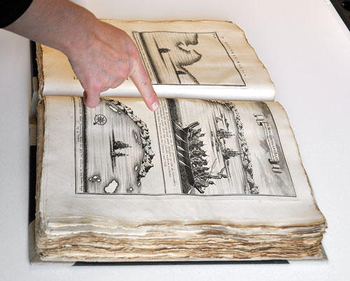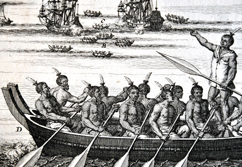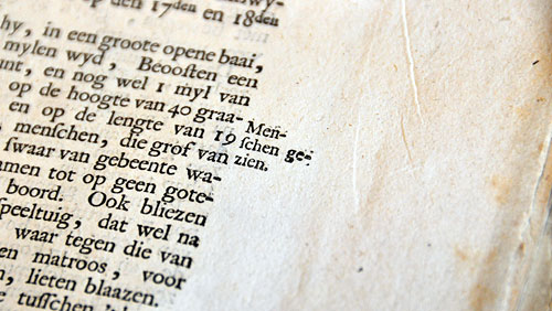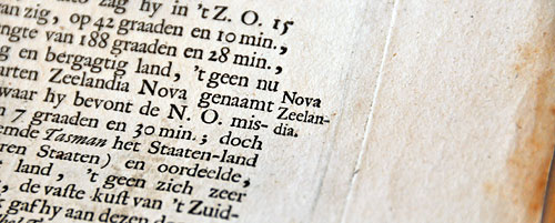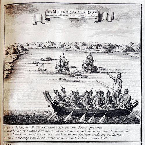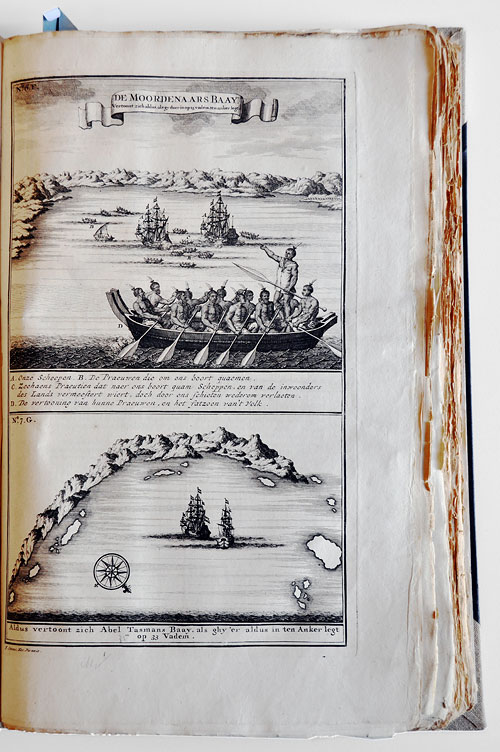 A part of Abel Tasman’s journal is published in the book Old and New East-India part III/2 (1726) by François Valentijn. The engravings by Frederik Ottens are adaptations of the original illustrations by Isaac Gilsemans. Een deel van het journaal van Abel Tasman is gepubliceerd in het boek Oud en Nieuw Oost-Indiën, deel III/2 (1726) van François Valentijn. De gravures van Frederik Ottens zijn bewerkingen van de orginele illustraties van Isaac Gilsemans.