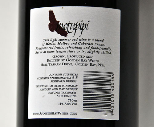 Motupipi Murderer’s Bay Red: a light summer wine from Golden Bay Wines, Abel Tasman Drive… Motupipi Murderer’s Bay Red: een lichte zomerwijn van Golden Bay Wines, Abel Tasman Drive…