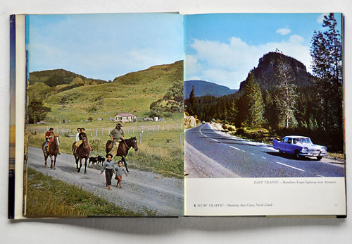 Slow traffic, Ruatoria, East Coast, North Island – Fast traffic, Hamilton-Taupo highway near Atiamuri”