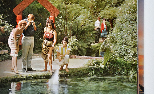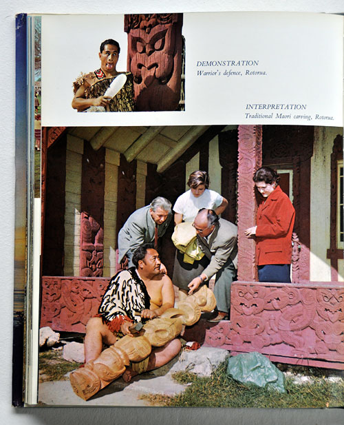 Book by the New Zealand Tourist and Publicity Department from 1966. Note the difference between therepresentation of Māori and Pakeha. Boek van de New Zealand Tourist and Publicity Department uit 1966. Let op het verschil in representatie tussen Māori en Pakeha.